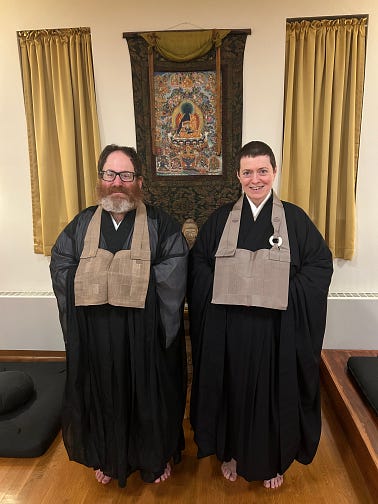 Marta Dabis, Nyokai Sōgen (Suchness Ocean, Sangha Source), received Dharma transmission from Shinjaku Koji Dreher on Sept. 18, 2025 at the Clouds and Water Zen Center in Saint Paul, MN, where Koji is the tanto(head of practice). Koji also serves as the guiding teacher of Cedar Rapids Zen Center in Iowa, and the co-guiding teacher of the Nebraska Zen Center in Omaha. While a lay practitioner and hospital chaplain, Marta joined with founding member Greg Zeke Keith to start a sitting group in the lineage of Suzuki Roshi in September 2016. The community has since grown into Jisso Ji Zen Center in Ann Arbor, MI. Great congratulations to both student and teacher. 🙏🏼